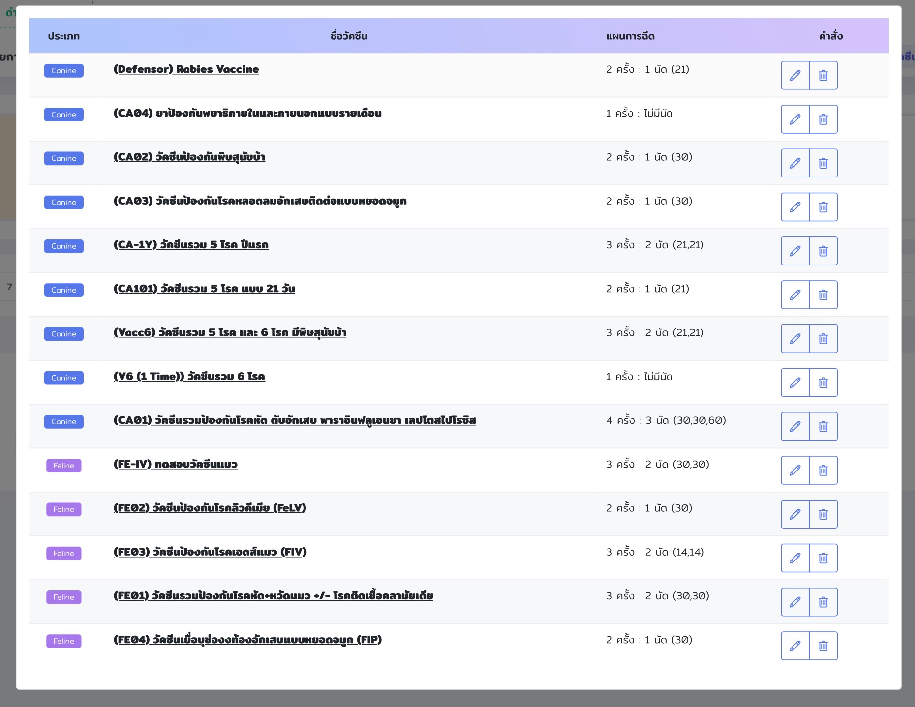 ระบบแผนการทำวัคซีนบน vetpresso (Vaccination Schedule)