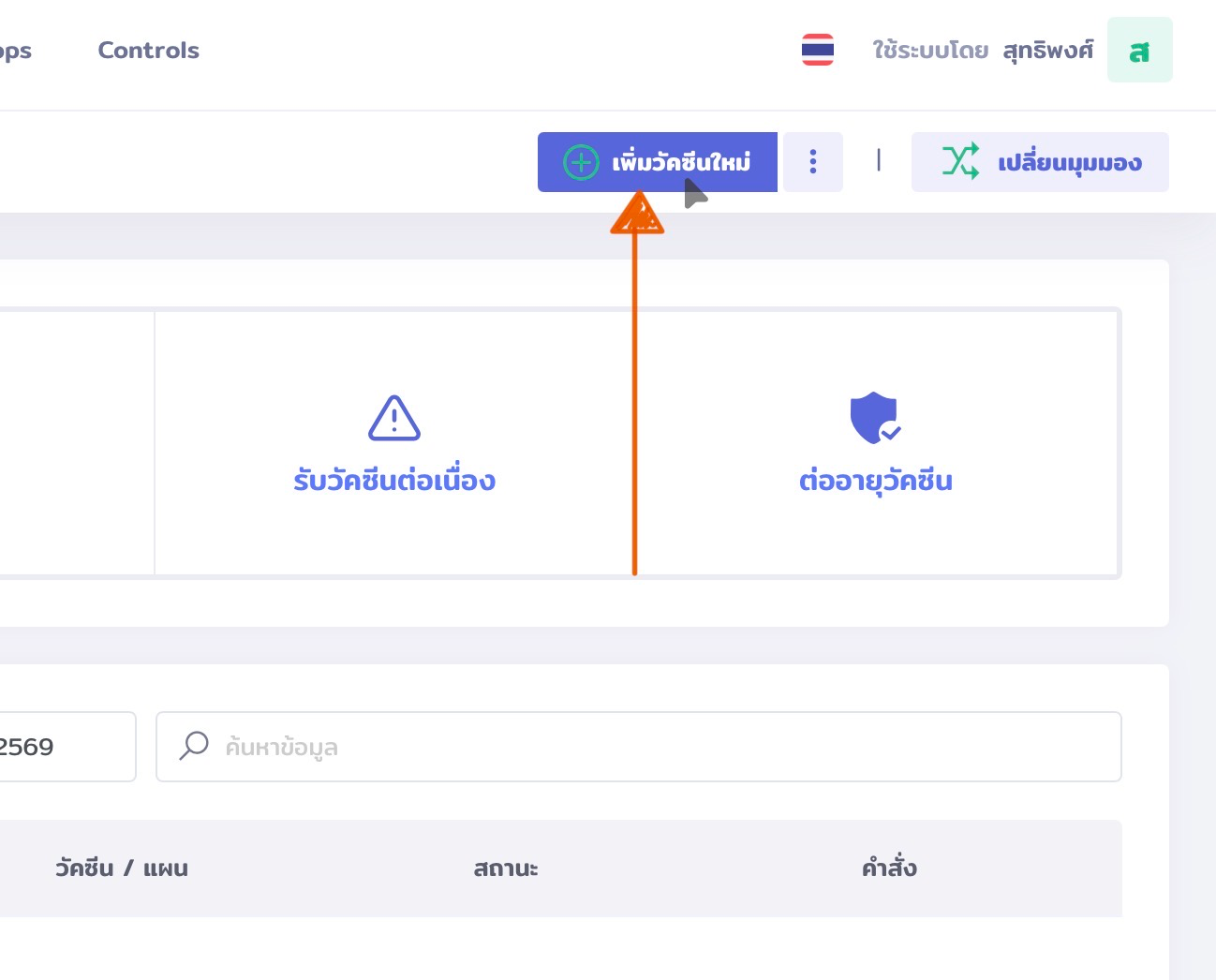 เลือกเมนูจัดการวัคซีน เพื่อ Overview แผนการฉีดวัคซีนที่มีในระบบ