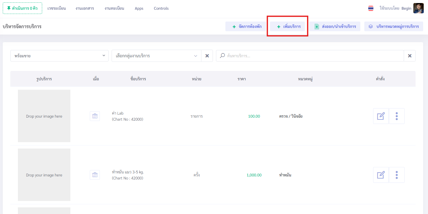3.3 คลิกเมนู +เพิ่มบริการ เพื่อเริ่มสร้างไอเท็มบริการ